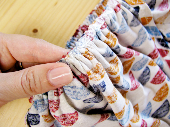 Es importante tomarse el tiempo necesario para dejar bien atrapados los frunces en esta costura y evitar el apelotonamiento de rizo, ya sabéis, distribuirlos con amor.
